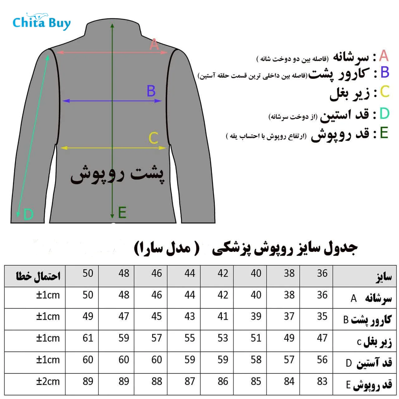 - روپوش پزشکی مدل سارا انتخابی ایدهآل برای بانوان شاغل در کادر درمان است. این روپوش با طراحی مدرن و زیبا، ترکیبی از شیکپوشی و کاربردی بودن را به ارمغان میآورد.