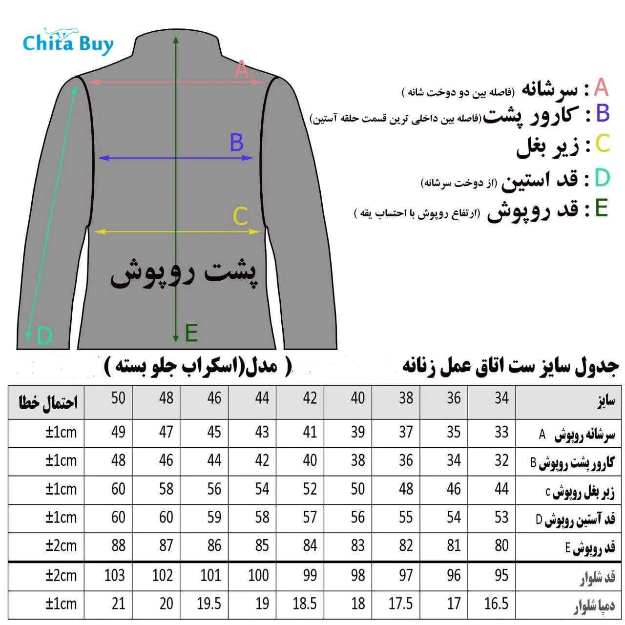 - سایزبندی:38 تا 50
